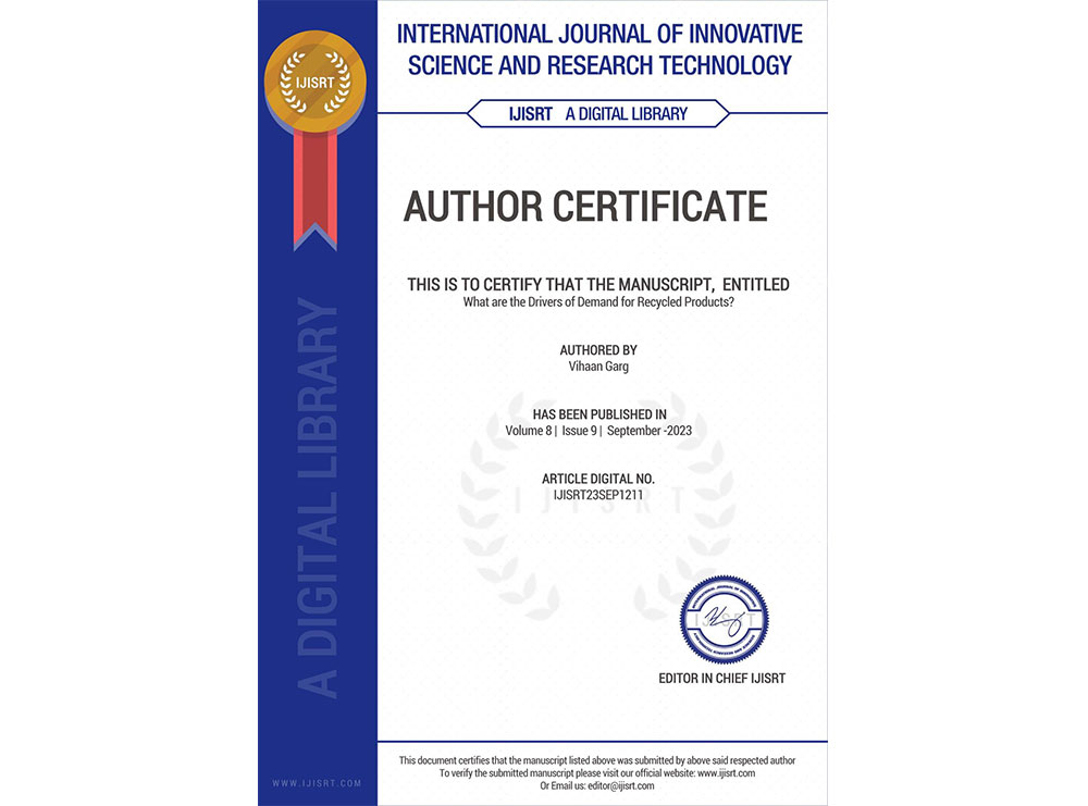 The paper's main findings are based on a critical analysis of the existing literature, augmented by insights from a case study of two successful Indian companies that manufacture recycled paper products. One of the companies is my very own startup ‘GlassUp’. The paper concludes with presenting the relation between the factors identified and the demand for recycled products along policy recommendations.